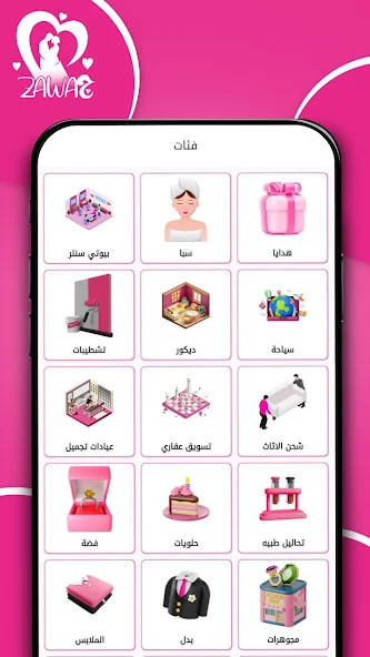 يقدم التطبيق خدمات متنوعة تشمل كل ما يتعلق بالزواج من الاستشارات إلى تنظيم الحفلات.
